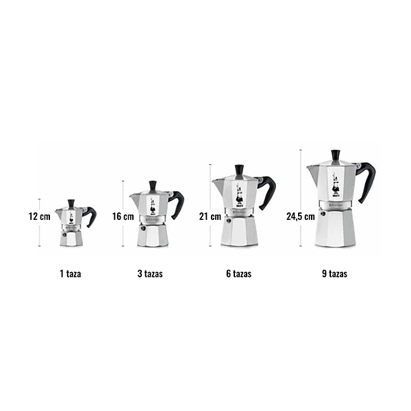 En Italia suelen consumir café en tazas bastante pequeñas que van de 20 a 30 ml aproximadamente, en toda América tenemos la costumbre de usar tazas bastante más grandes y consumir un café menos concentrado, el modelo de 3 tazas es un modelo que para nosotros cumpliría con la porción para una sola persona por lo que la recomendamos para uso individual, si gustas mayor capacidad te invitamos a revisar otros modelos. Importante destacar que en las Mokas no puedes preparar ni más ni menos cantidad de la cual están fabricadas, el funcionamiento solo es correcto cuando se respetan las medidas indicadas.
